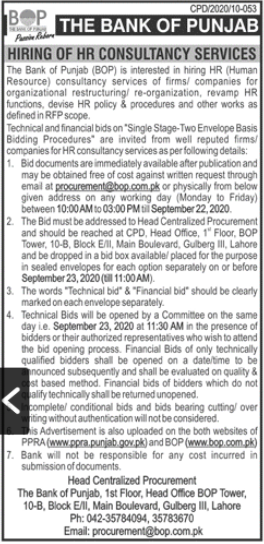 Vacancies in The Bank of Punjab BOP Advertisement September 2020