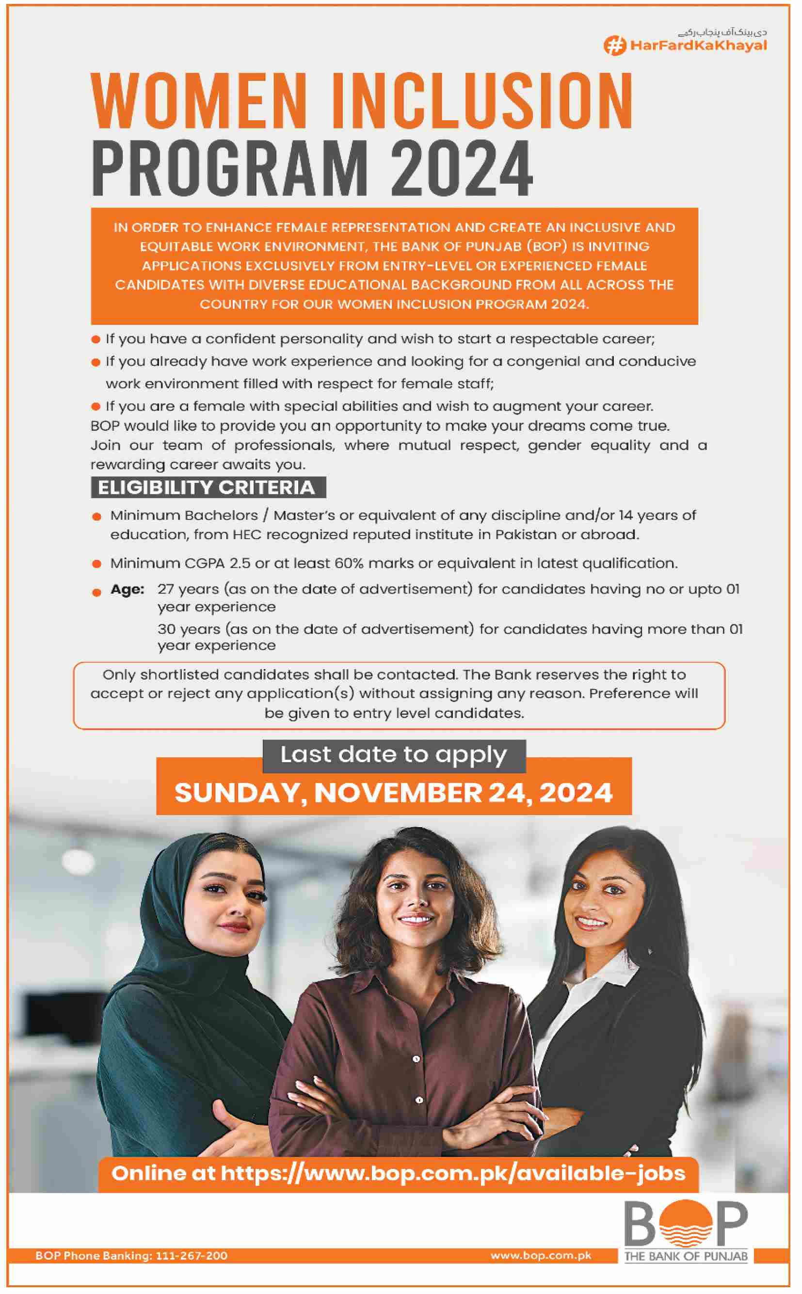 The Bank of Punjab BOP Women Inclusion Program 2024