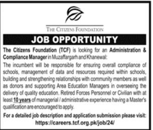 Latest The Citizens Foundation Management Posts Muzaffargarh 2025