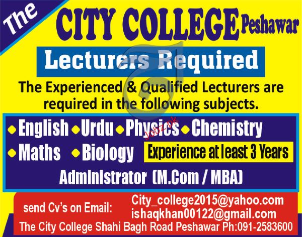 Latest The City College Peshawr Teaching Posts Peshawar 2025
