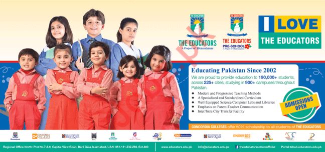 The Educators Islamabad, Pakistan open admissions 2018 for the classes of Class 1 to Class 10. Should the child clear admission test and interview, the admission fee invoice is to be submitted at the school to complete the admission process. Read newspaper ad for exact details.
