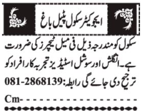 The Educators is looking for candidates for following posts as per job advertisement published in daily Jang Newspaper of October 25, 2025 for location Patel Bagh Quetta, quetta Balochistan Pakistan: