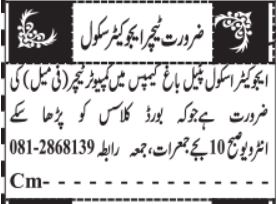 The Educator School is looking for candidates for following posts as per job advertisement published in daily Jang Newspaper of April 9, 2025 for location Patel Bagh Quetta, quetta Balochistan Pakistan: