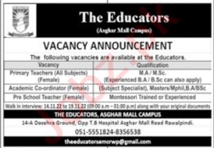 The Educators is looking for candidates for following posts as per job advertisement published in daily Jang Newspaper of November 13, 2022 for location Rawalpindi, rawalpindi Punjab Pakistan: