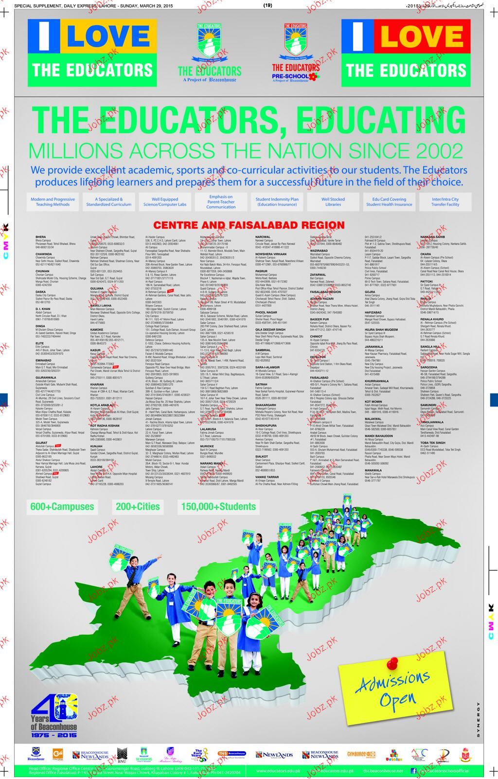 The Educators Admission in Playgroup to Matric in lahore. Read newspaper ad for exact details.