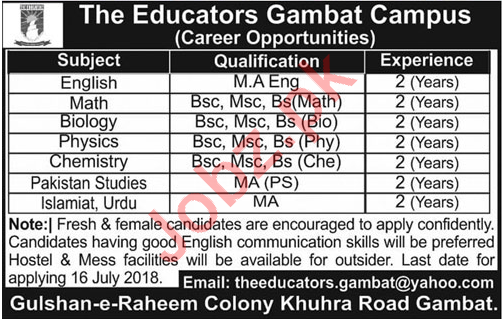 Apply as per details in job advertisement. Login to view further details of how to apply via https://www.jobz.pk online.