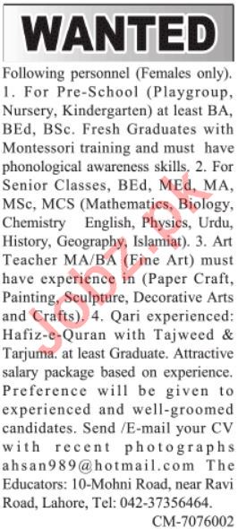 Latest The Educators Education Posts Lahore 2025