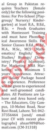 Apply as per details in job advertisement. Login to view further details of how to apply via https://www.jobz.pk online.