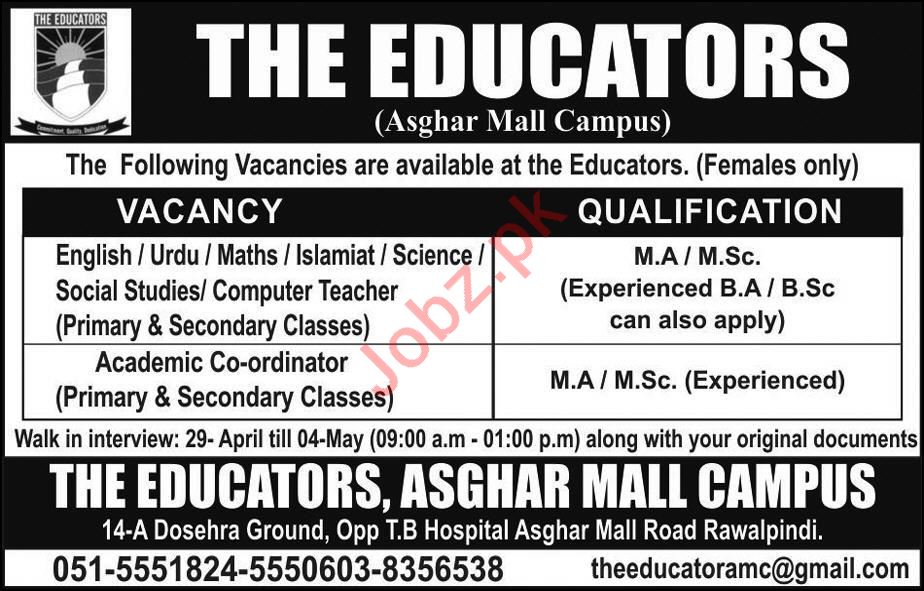 Latest The Educators Teaching Posts Rawalpindi 2025
