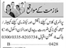 Apply as per details in job advertisement. Login to view further details of how to apply via https://www.jobz.pk online.