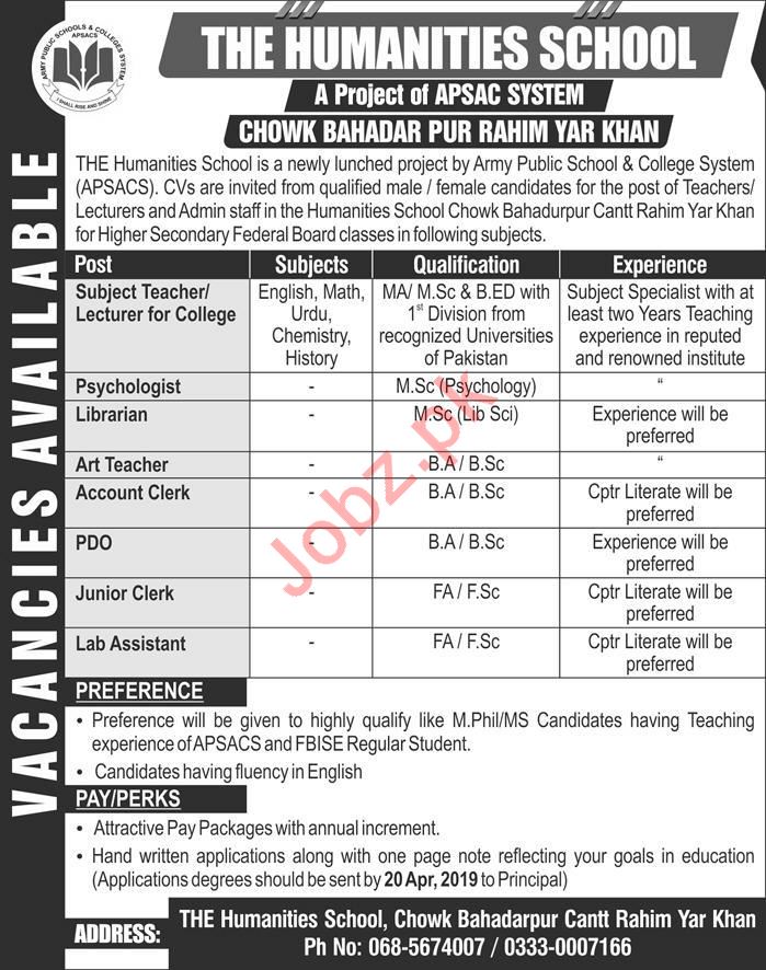 Latest The Humanities School Teaching Posts Rahim Yar Khan 2025