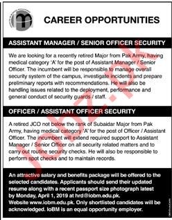 Vacancies in The Institute of Business Management IoBM Advertisement March 2019