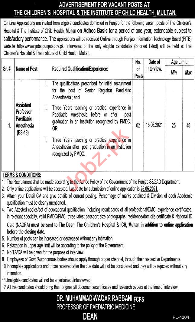 The Institute Of Child Health Multan Jobs 2021 For Professor