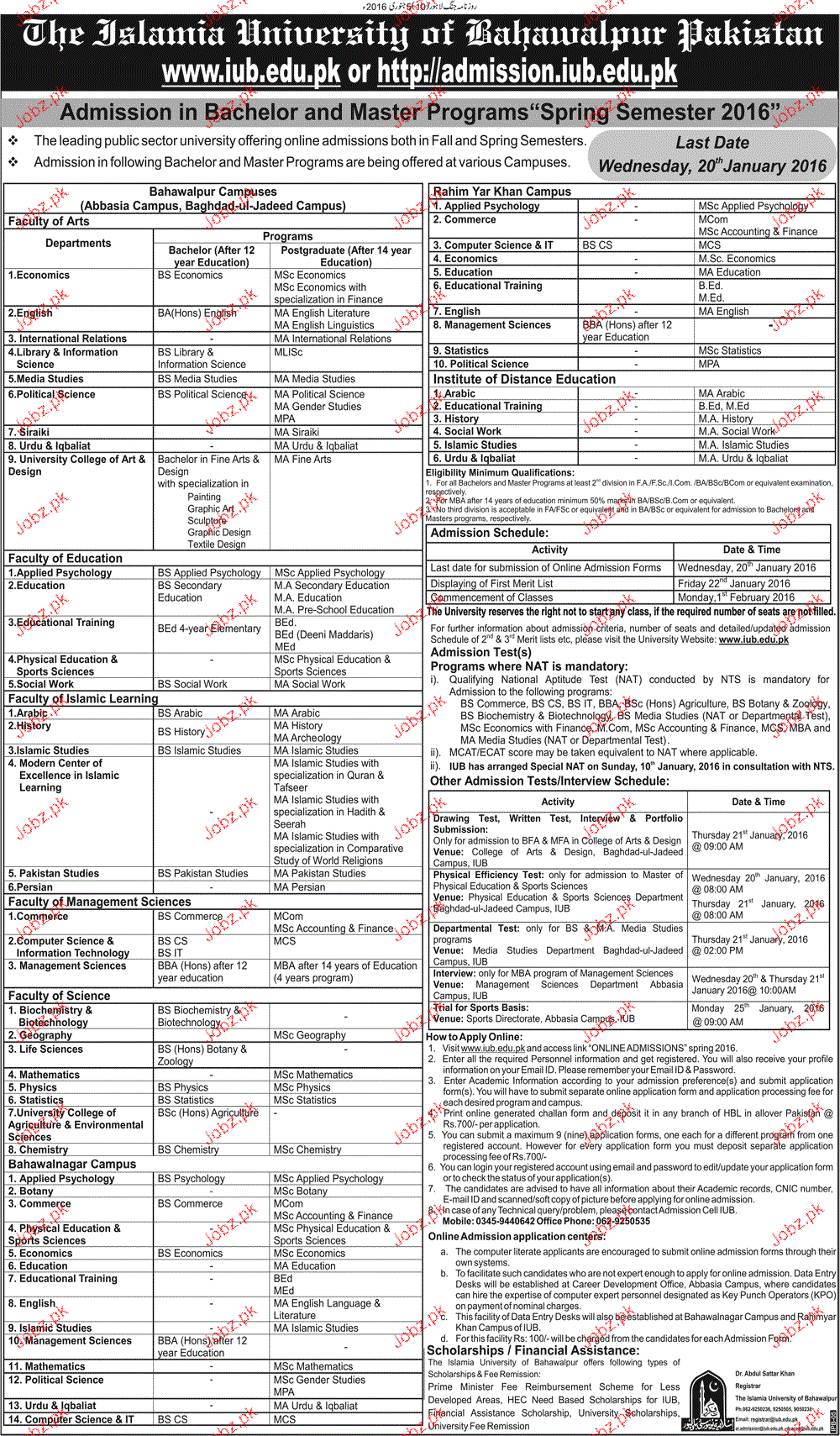 The Islamia University of Bahawalpur Admission in BA and MA in Bahawalpur. Read newspaper ad for exact details.