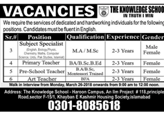 Latest The Knowledge School Teaching Posts Islamabad 2025