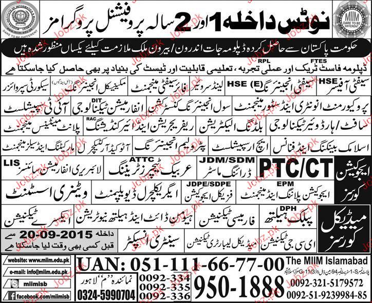 The MLLM Islamabad Admission in Courses in Islamabad. Read newspaper ad for exact details.