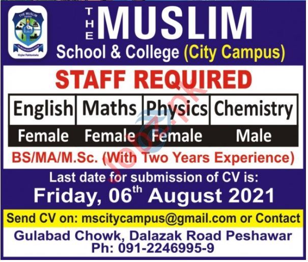 The Muslim School & College City Campus Peshawar Jobs 2021