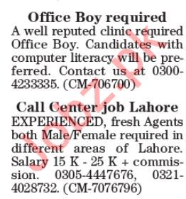 Apply as per details in job advertisement. Login to view further details of how to apply via https://www.jobz.pk online.