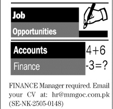 The News Sunday Classified Ads 1 June 2025 for Finance Staff