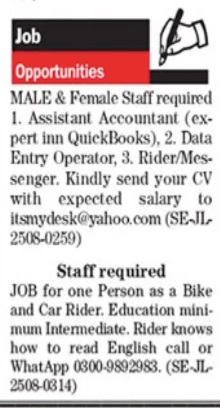 The News Sunday Classified Ads 10 Aug 2025 For Admin Staff