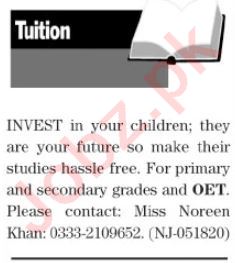 Academy Karachi, karachi Sindh Pakistan invites applications from eligible candidates for the post of home tutor and teacher as per advertisement of March 11, 2024 published in daily The News Newspaper. Preferred Education is MA, Bachelor, Master and M.sc etc.
