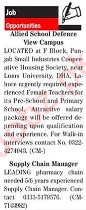 Private Company invites applications for job positions advertised in daily The News dated 11 March 2024 for following vacancies in Lahore, lahore Punjab Pakistan.