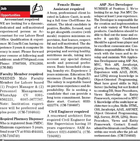 Coordinator, Business Development Executive, Civil Supervisor, Architect, Writer, Office Assistant, QC Analyst, QA Analyst, Promotion Officer, Assistant Supervisor, Outdoor Delivery Staff, Security Guard, Driver, Generator Operator, Site Supervisor, Lady Telephone Operator, Diesel Engine Mechanic seeks in well reputed companies.