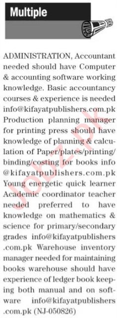 Vacancies in Kifayat Publishers Advertisement September 2023