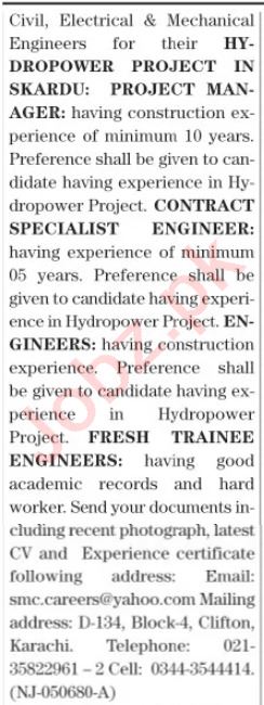 Engineering Company invites applications for job positions advertised in daily The News dated 14 August 2023 for following vacancies in Karachi, karachi Sindh Pakistan.