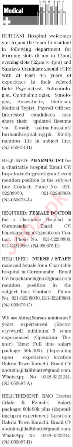 Latest Hospital Clinic Medical Posts Karachi 2025