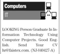 The News Sunday Classified Ads 13 Feb 2022 for IT Staff