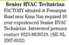 Factory invites applications for job positions advertised in daily The News dated 14 July 2025 for following vacancies in Kahna Nau Market Lahore, lahore Punjab Pakistan.