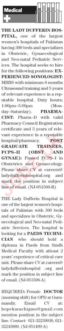 Latest Hospital Clinic Medical Posts Karachi 2025
