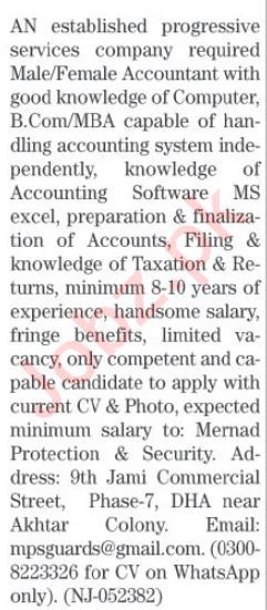Progressive Group Of Companies Karachi, karachi Sindh Pakistan invites applications from eligible candidates for the post of female accountant and accountant as per advertisement of July 15, 2024 published in daily The News Newspaper. B.com and MBA etc. educational qualification will be preferred.