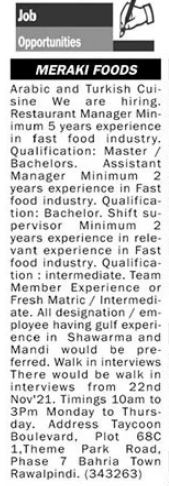Apply as per details in job advertisement. Login to view further details of how to apply via https://www.jobz.pk online.