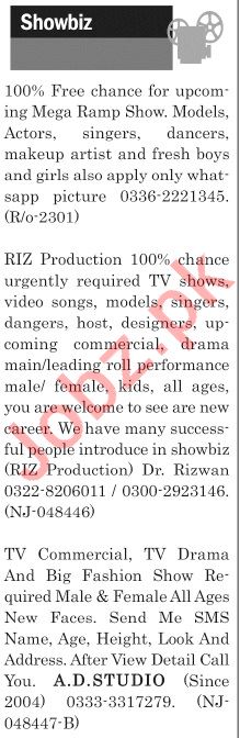 The News Sunday Classified Ads 15th Sep 2019 For Showbiz