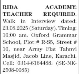 The News Sunday Classified Ads 17 Aug 2025 For Rida Academy
