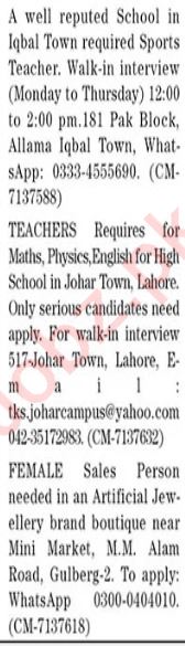 Private Company latest Classifieds Admin Clerical jobs and others can be applied till October 29, 2023 or as per closing date in newspaper ad. Read complete ad online to know how to apply on latest Private Company job opportunities. Sales, Mathematics, Teaching/Lecturing, Sales Management, Sports, English Teaching and Physics Tutoring skills may beneficial for these Private Company jobs.