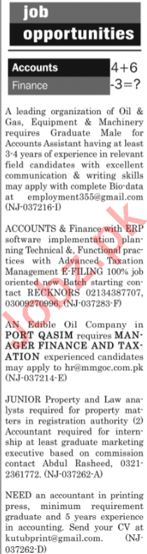 Latest Private Company Accounting Posts Karachi 2025