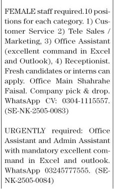 The News Sunday Classified Ads 18 May 2025 for Office Staff