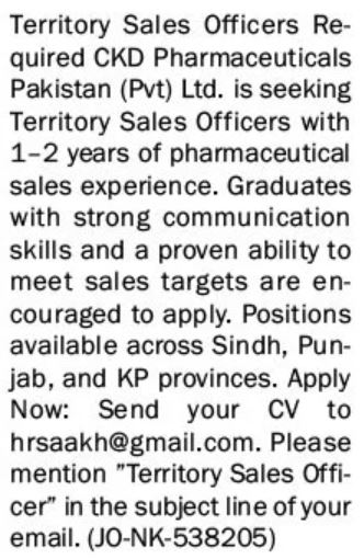 Latest Sales jobs and others Classifieds jobs in CKD Pharmaceutical Company closing date is around June 7, 2025, see exact from ad. Read complete ad online to know how to apply on latest CKD Pharmaceutical Company job opportunities.