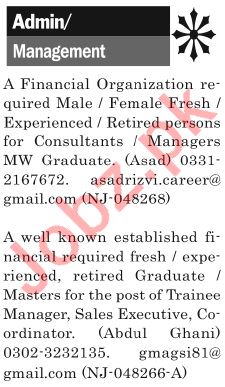 Manager, Admin Manager, Assistant Manager, Accounts Manager, Accountant, Assistant Accounts Manager, Accounts Officer, Finance Manager, Sales Manager, Marketing Manager, Executive Manager, Branch Manager, Secretary, Security Guard, Driver, Office Assistant needs in well progressive companies.
