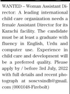 Vacant posts including woman assistant director and assistant director are announced in Human Health Care Organization Karachi, karachi Sindh Pakistan as per 20 June 2022 advertisement in daily The News Newspaper. Educational qualifications required Bachelor and Intermediate etc.
