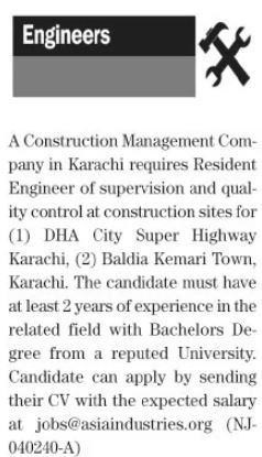 Asian Industries is looking for candidates for following posts as per job advertisement published in daily The News Newspaper of June 20, 2022 for location Karachi, karachi Sindh Pakistan:
