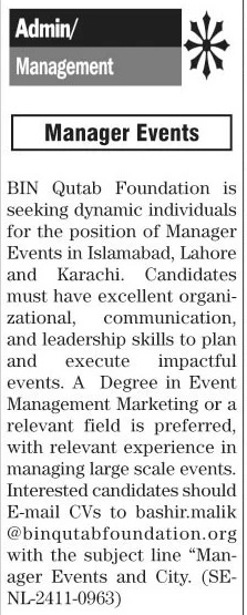 Latest Management jobs and others Classifieds jobs in Bin Qutab Foundation closing date is around December 17, 2024, see exact from ad. Read complete ad online to know how to apply on latest Bin Qutab Foundation job opportunities.