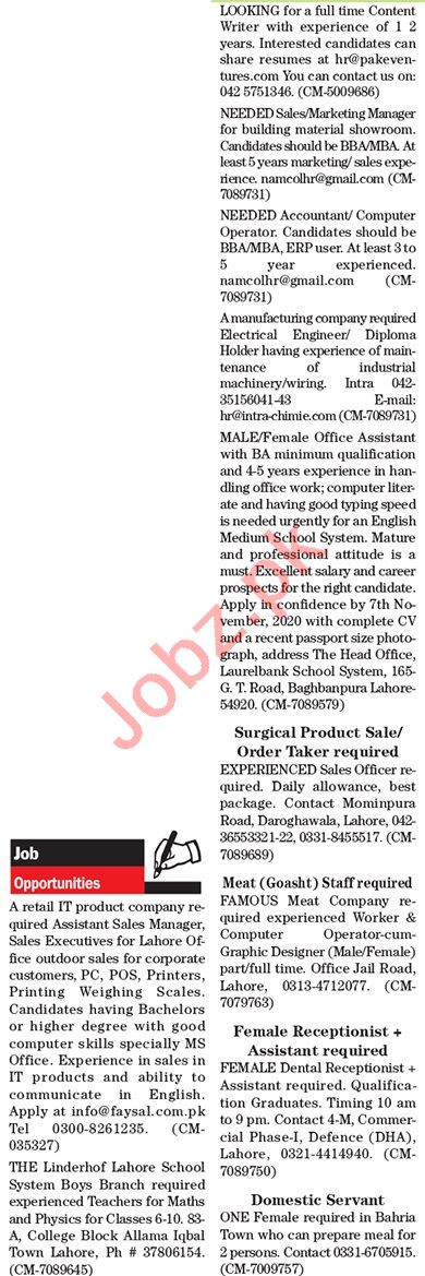 The News Sunday Classified Ads 1st Nov 2020 Office Staff