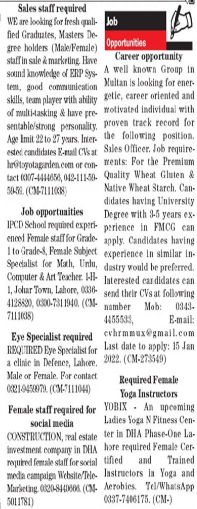 The News Sunday Classified Ads 2 Jan 2022 for General Staff