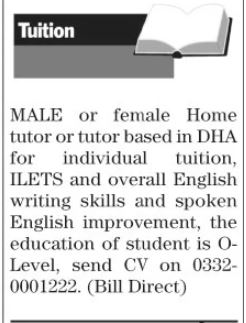 Vacant posts including ielts tutor, teacher, tutor and home tutor are announced in Academy Karachi, karachi Sindh Pakistan as per 22 July 2024 advertisement in daily The News Newspaper. Persons with Master and Bachelor etc. education can apply.