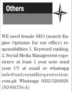 Apply as per details in job advertisement. Login to view further details of how to apply via https://www.jobz.pk online.