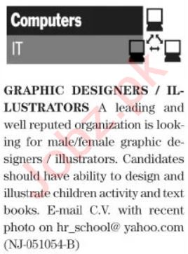Apply at IT Company latest Classifieds jobs in Design and departments before closing date which is around November 30, 2023 or as per closing date in newspaper ad. Read complete ad online to know how to apply on latest IT Company job opportunities. Learn today skills like Graphic Design, Adobe Photoshop and Illustrator to apply confidently on these IT Company jobs.